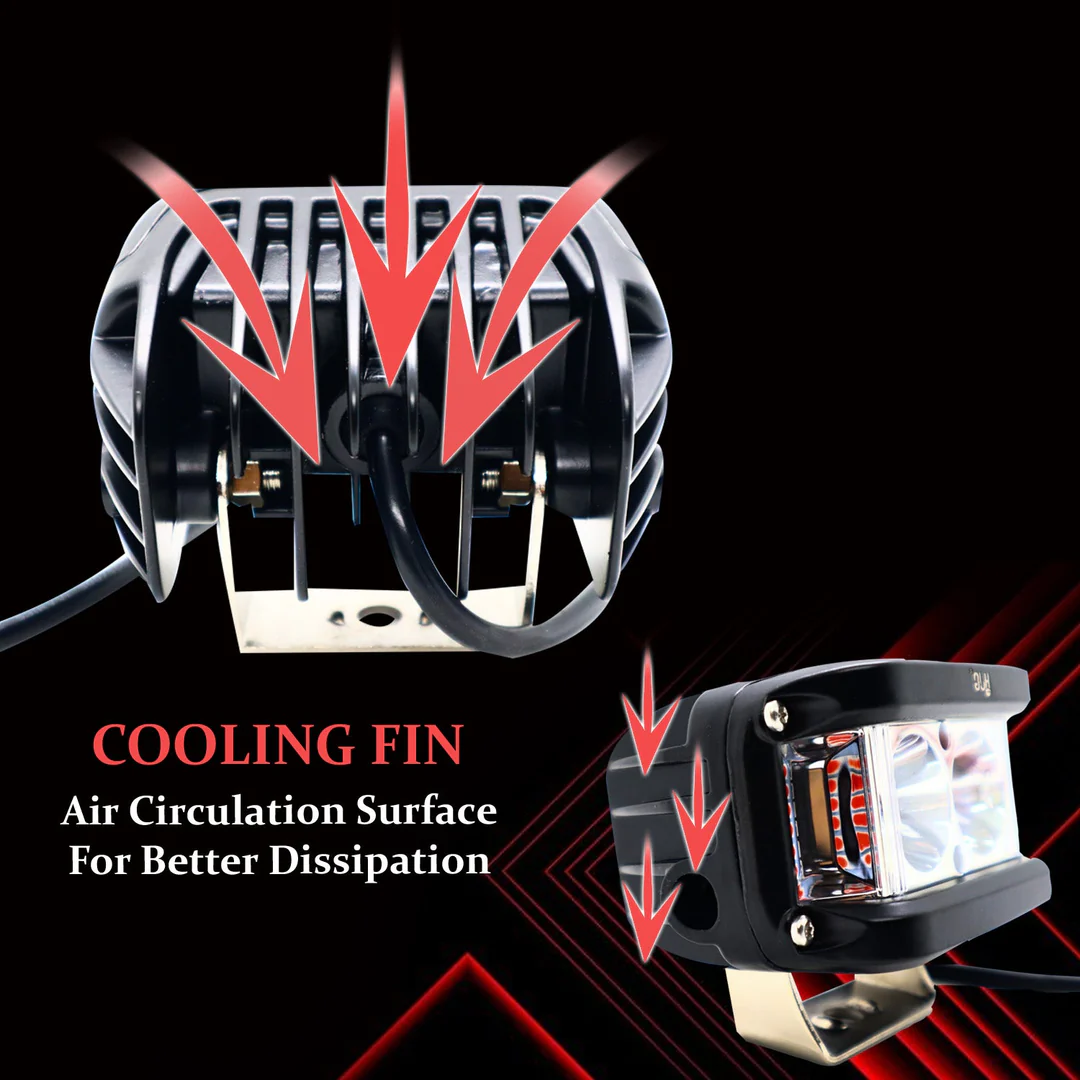 2 LED Fog Light with Red & Blue Strobe Waterproof Flood Beam Off Road Driving Lamp for Motorcycle & Cars (36W)
