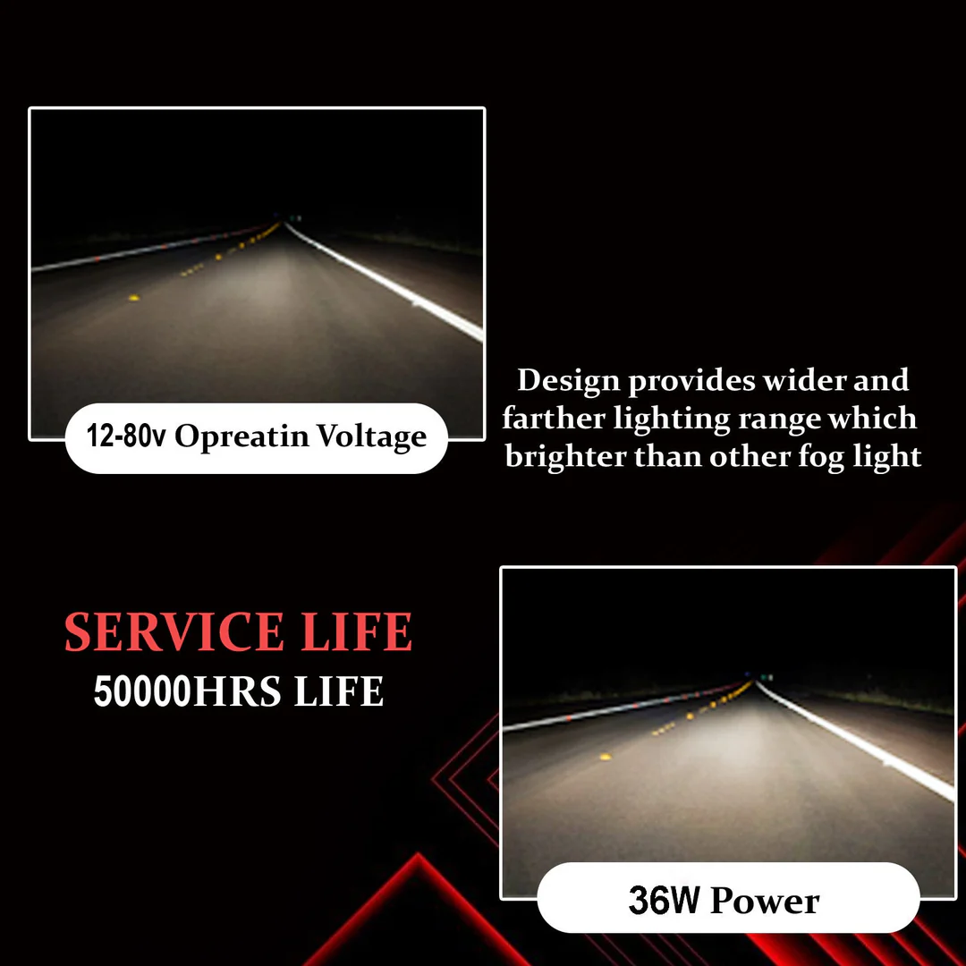 Universal Auxiliary Fog Lamp For All Vehicle (Original HJG Product). 100% Brand New and easy to install · angel light: White . · Waterproof, dust-proof, rust-proof, you can use this headlight even in rainy days. Light Power: 36w · Voltage: 12-80V DC. Flux: 6000LMX · Environment Temperature: -40~55 cent degree· Range: 300m · Material: Aluminum Alloy · LED Bulb, Fog light With Blue & Red Strobe light: 6000LMX U.S. Imported LED · Weight: 150g, 20000 hours life, at least 15 times More Then xenon lamp.