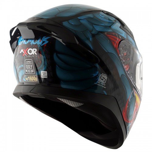 APEX VENOMOUS BLACK BLUE FULL FACE HELMET FOR MAN AND WOMAN