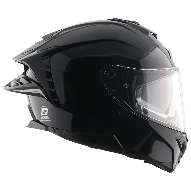 Aggressive styling meets certified safety with dual spoilers, UV visor, D-ring fit & Bluetooth-ready design.