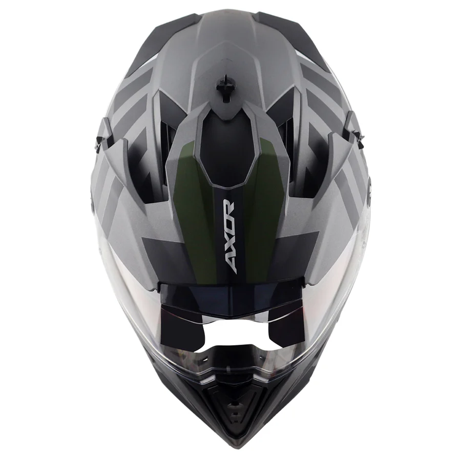 1. Can I use off-road goggles with this helmet? Yes, the Axor X-Cross is designed with a wide eye port that accommodates most standard off-road goggles when the main clear visor is in the open position.