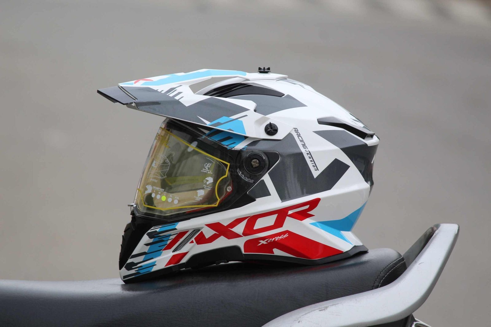 AXOR X-CROSS X1 DUAL-VISOR WHITE RED BLUE HELMET FOR MAN AND WOMAN