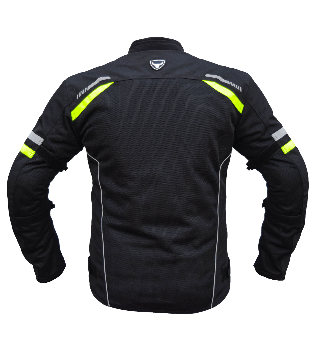- Made with 100 % Polyester 600 DN abrasion resistant Fabric has PU+ WR coating makes the fabric best in class for Motorcycle riding Jacket.