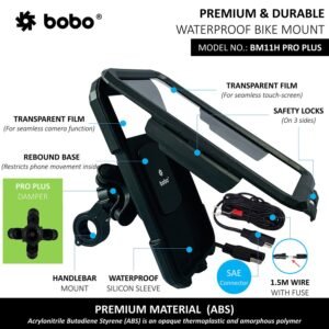 Engineered for riders who demand security, stability, and convenience, the BOBO BM11H PRO PLUS ensures your phone stays safe, visible, and fully charged even on the roughest terrains.