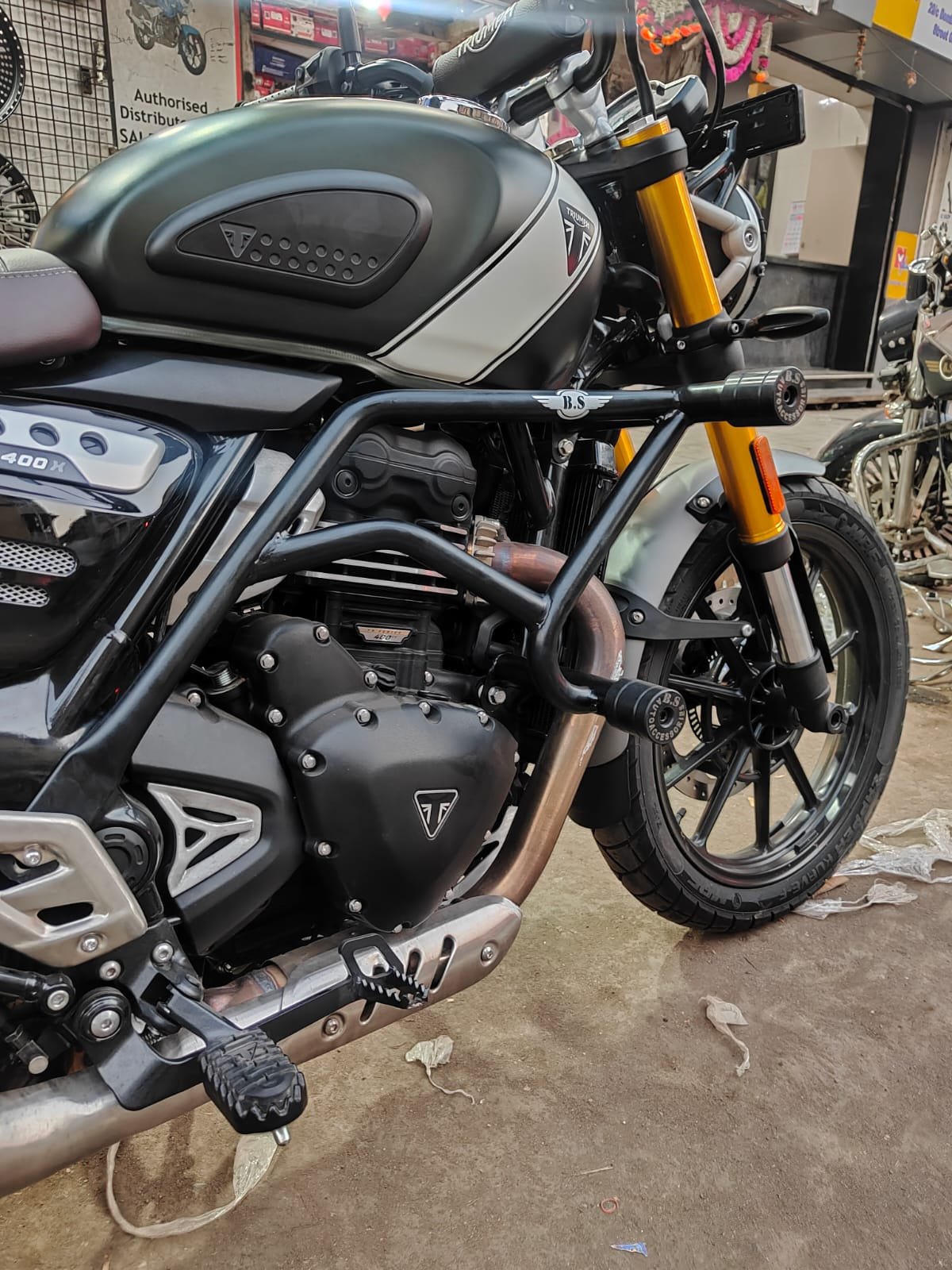 Built for rugged performance and everyday riding safety, the BS Auto Crash Guard for Triumph Scrambler 400 X offers superior protection, durability, and a premium aesthetic upgrade for your motorcycle.