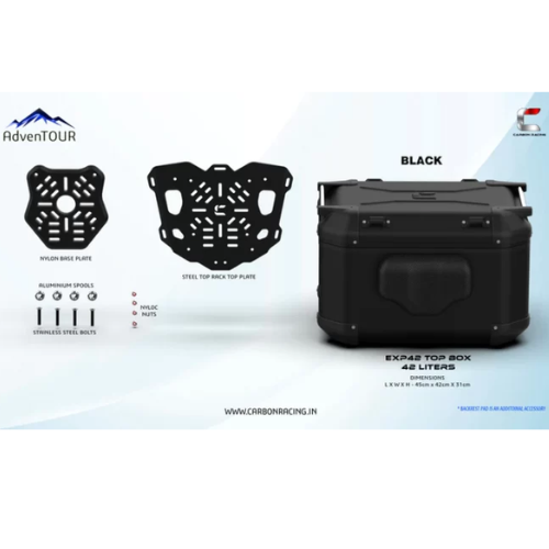 Carbon Racing AdvenTOUR Explorer-Pro Top Box-42 Liters (EXP42)+Universal Mounting Kit (UTRK01)- Black