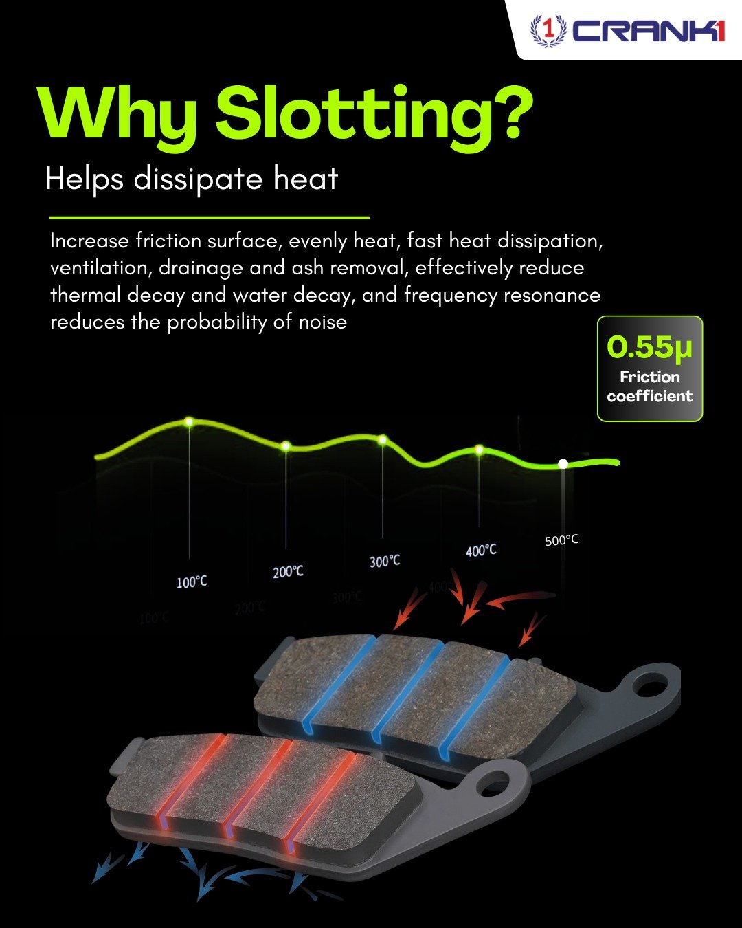 A: No, CRANK1 carbon pads are disc-friendly with advanced surface treatment.Q3: How heat resistant are these pads?