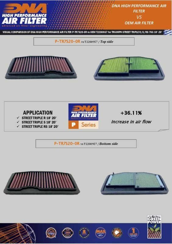 Triumph Street Triple 765 owners (2017–2022) who want enhanced acceleration, improved engine breathing, and long-term performance without sacrificing filtration quality.