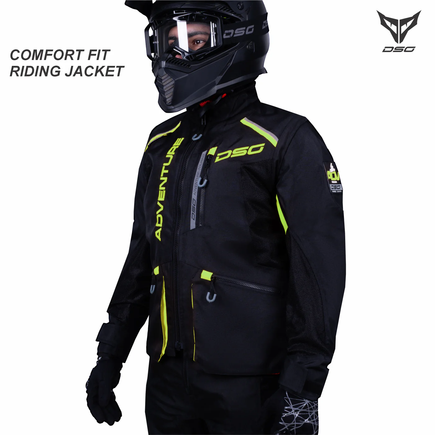 DSG Adventure Riding Jacket offers CE Level 2 protection, airflow, & storage for unmatched touring comfort.