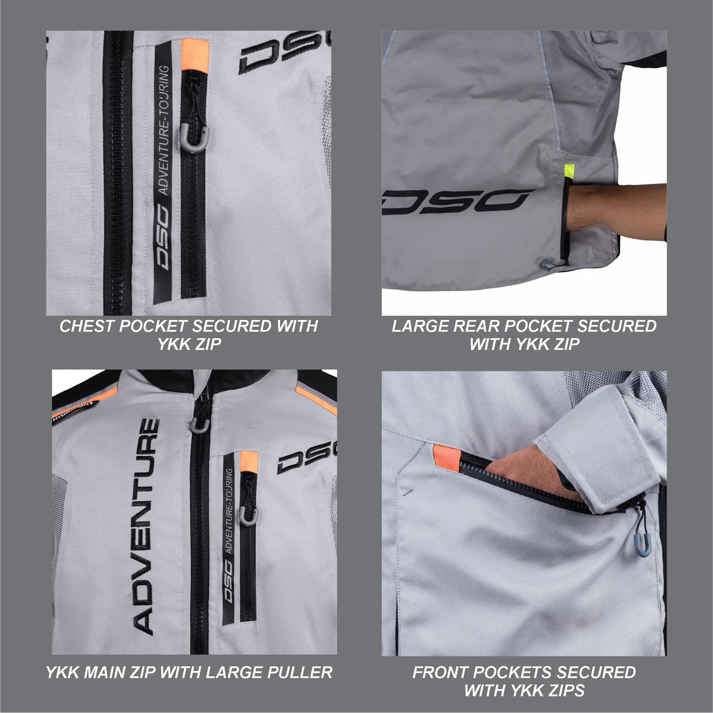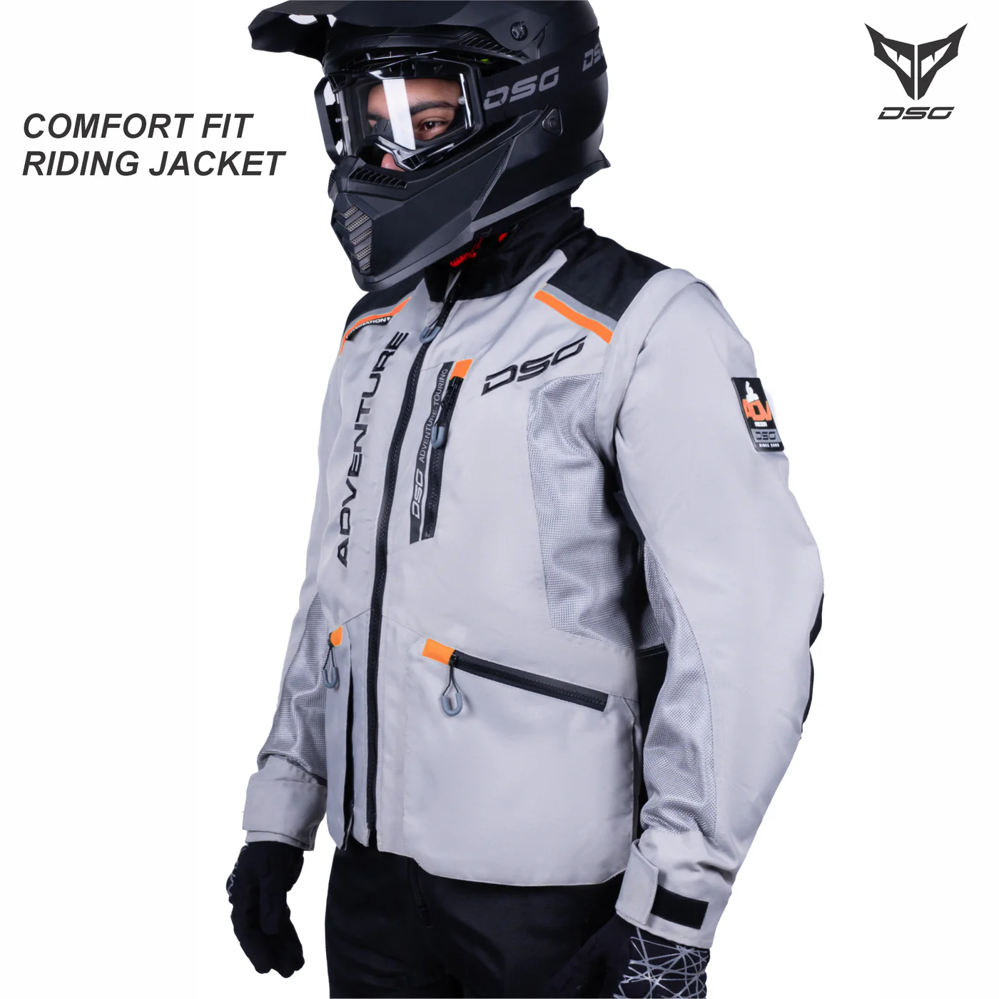 DSG Adventure Riding Jacket offers CE Level 2 protection, airflow, & storage for unmatched touring comfort.