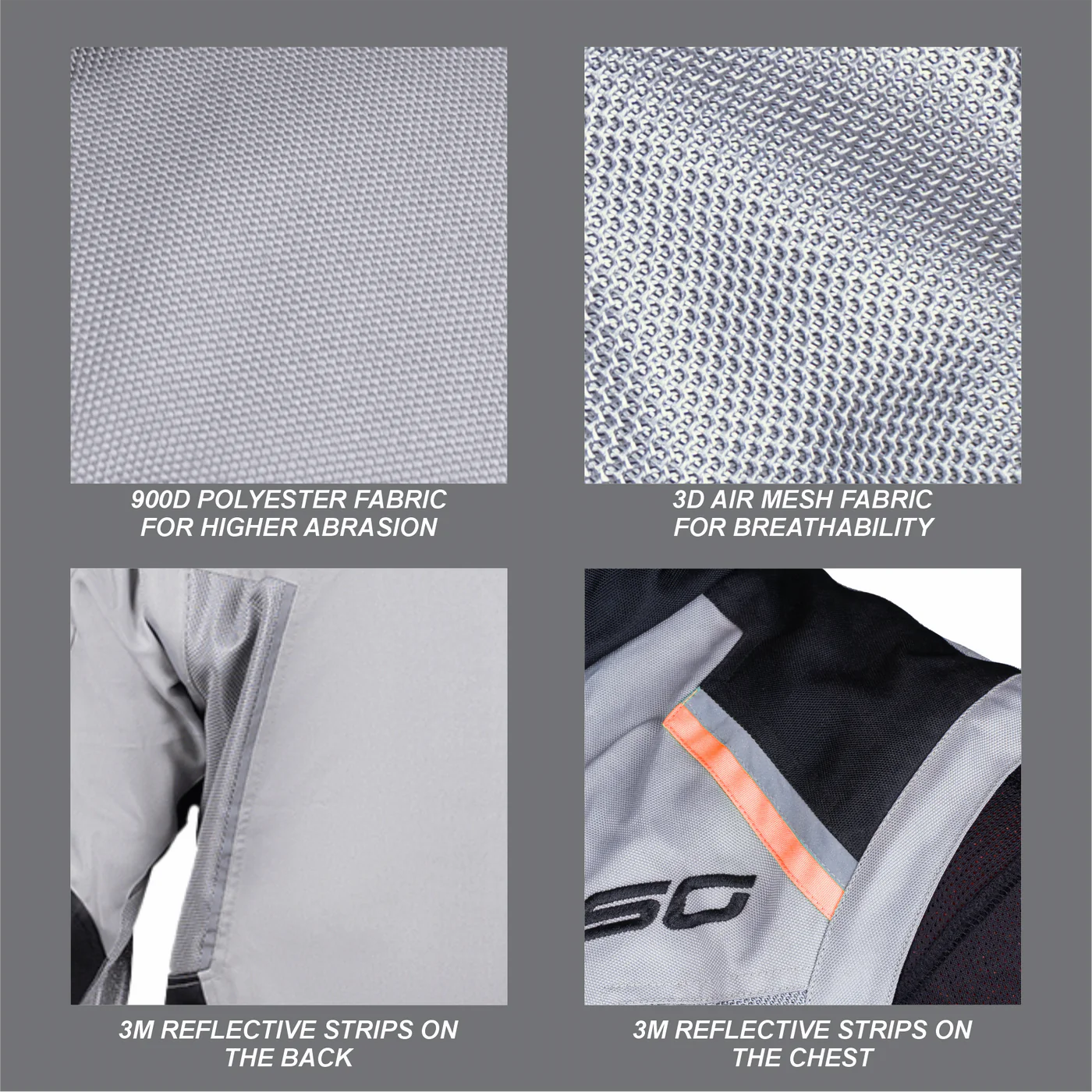900D Polyester Fabric – Heavy-duty outer shell for high abrasion resistance during adventure touring.