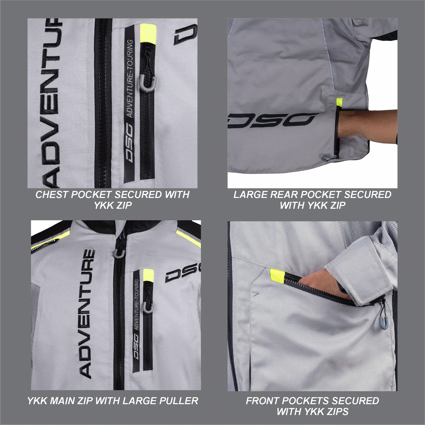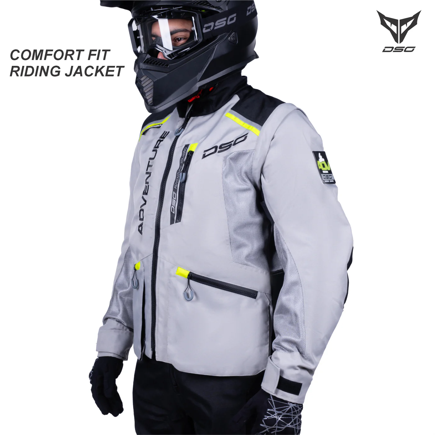 DSG Adventure Riding Jacket offers CE Level 2 protection, airflow, & storage for unmatched touring comfort.