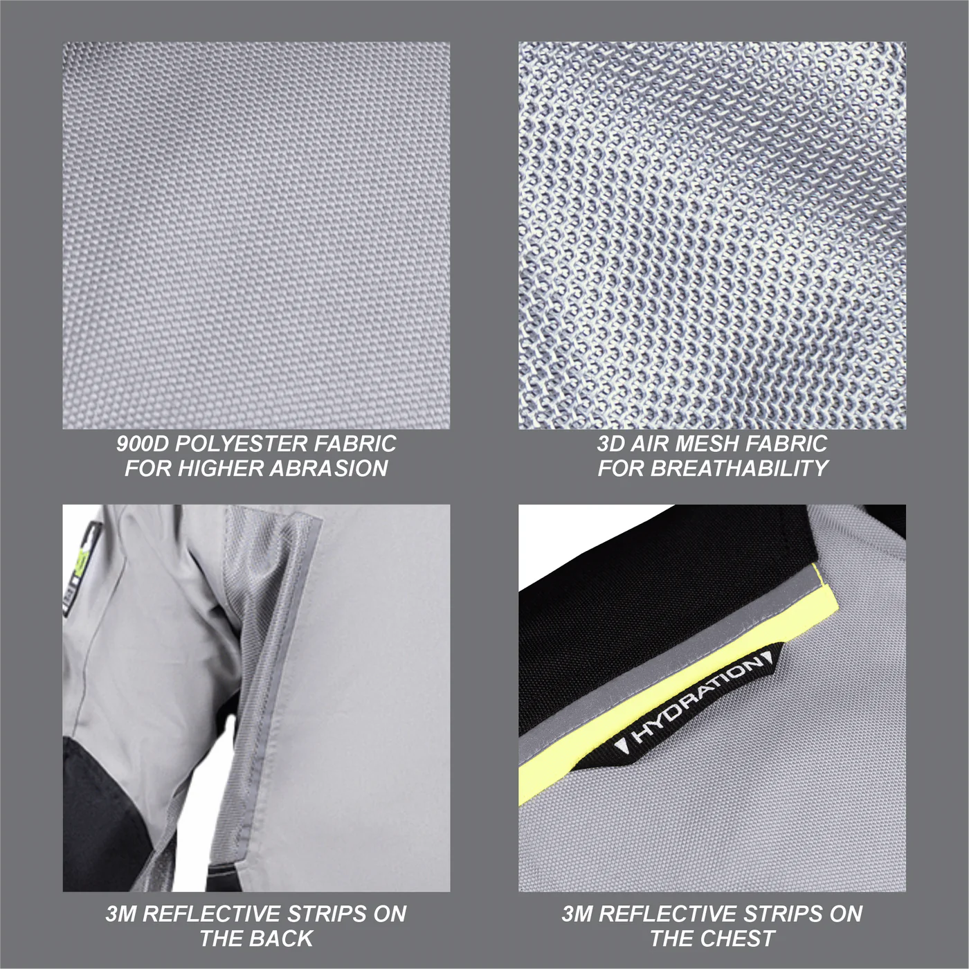 900D Polyester Fabric – Heavy-duty outer shell for high abrasion resistance during adventure touring.