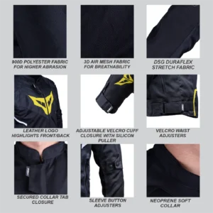 DSG GPX Riding Jacket with CE Level 2 protectors, MotoGP sliders, air mesh, and ergonomic fit.