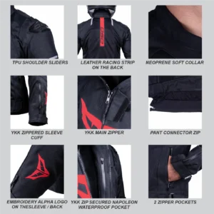 A: While it offers some water resistance due to neoprene materials, it is not fully waterproof.Q2. What makes the chest protectors special in this jacket?
