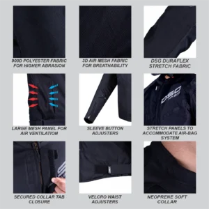 Race-spec DSG jacket with CE Level 2 armor, thermal liner & sliders—built for serious riders.