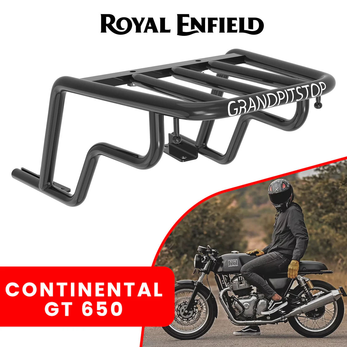 Grand Pitstop EXTENDED TOP RACK WITHOUT PLATE – Black for Royal Enfield – CONTINENTAL GT