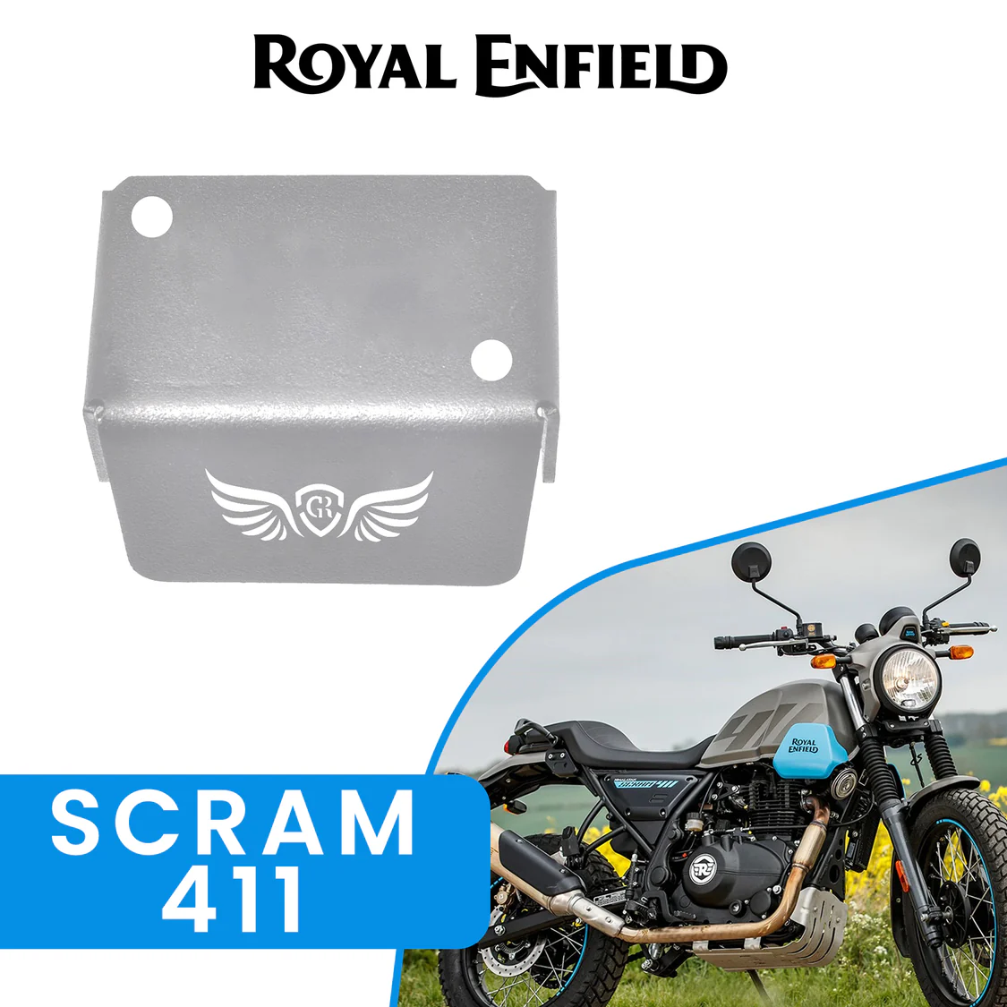 GRAND PITSTOP FRONT FLUID RESERVOIR COVER – Silver for Royal Enfield – SCRAM 411