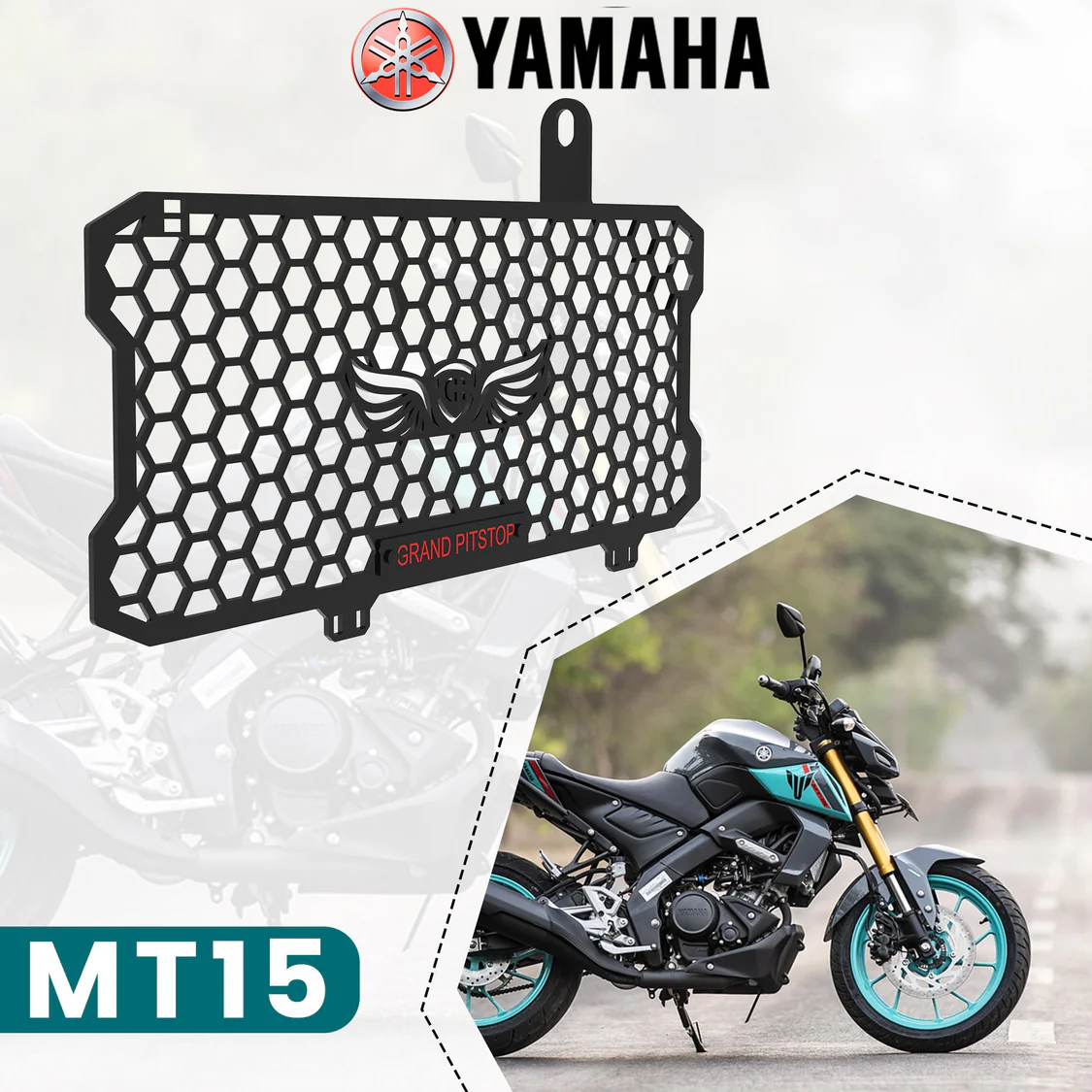 Built to combine style with function, the GRAND PITSTOP Radiator Grill is designed specifically for Yamaha MT15 riders seeking robust radiator protection without compromising airflow or aesthetics.
