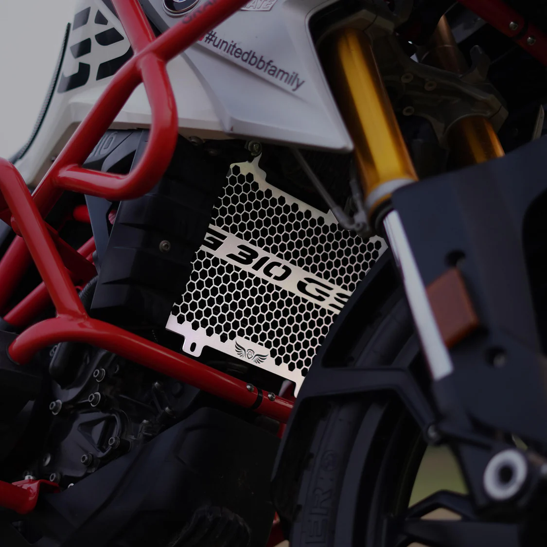 Custom-fit radiator grill for BMW G310 GS. Ensures airflow, protection & aesthetic enhancement.