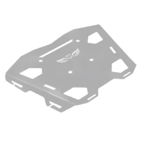 Heavy-duty silver top rack plate for Himalayan BS6 – offers durable support and seamless luggage mounting.