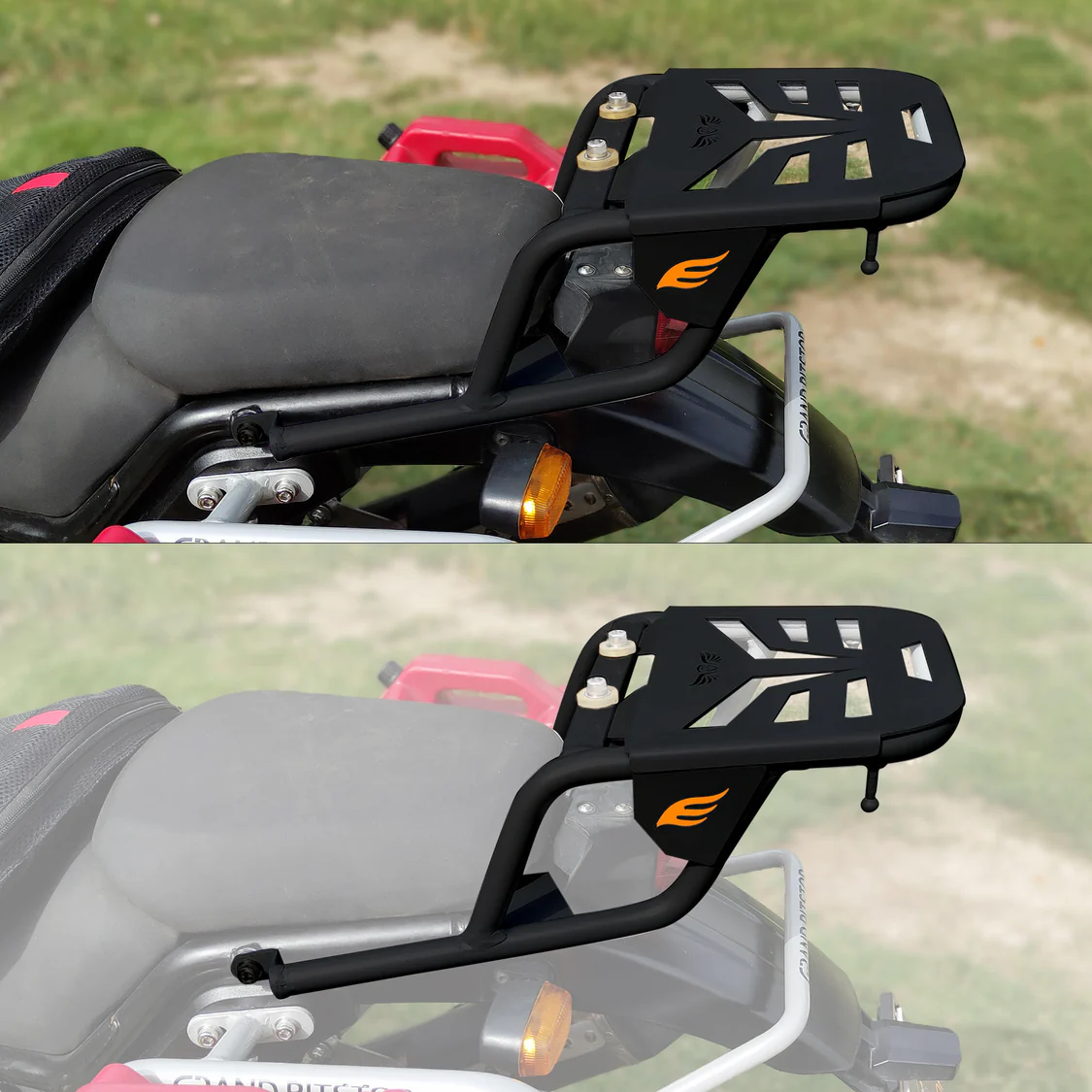 Designed specifically for Royal Enfield Scram 411, the Grand Pitstop Top Rack with Plate offers unmatched utility and robust support for carrying luggage, making it a must-have for riders who love touring and long-distance journeys.