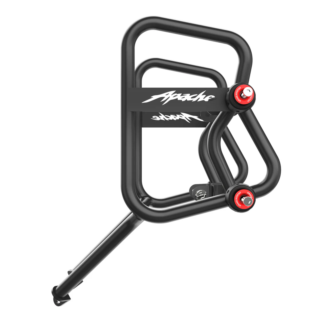 Heavy-duty crash guard with sliders for TVS Apache 160 & 200. Ensures impact protection and stylish design.