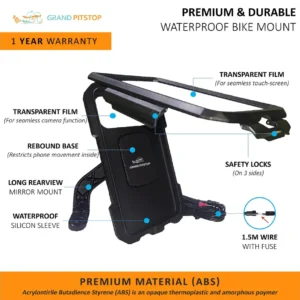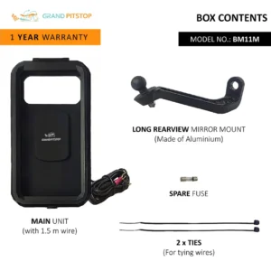Keep your phone safe, fully charged, and accessible during rides with the GrandPitstop Waterproof Mirror Mount, designed for motorcycles, bikes, and scooters. Perfect for GPS navigation and maps, this mount offers ultimate protection, convenience, and reliability.