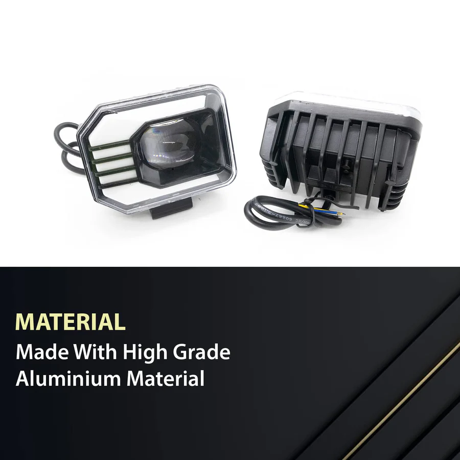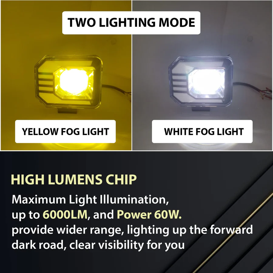 Yellow/White 30W Dual Lens Mini Fog Light (12V DC, Pack of 1 Pcs, Universal for Bikes & Cars)
