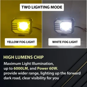 Headlight LED Work Light DRL Fog Lamp Dual Color Motorcycle Lights Spot Light High beam/Low beam(9-80V DC – 60W)