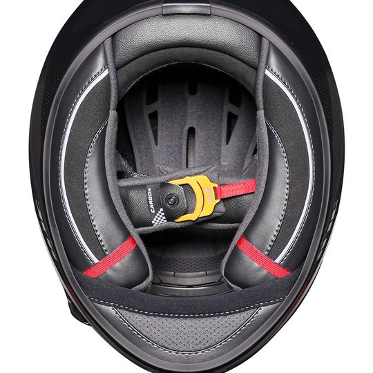 Ultra-light carbon full-face helmet with race aerodynamics, wide visor, advanced ventilation & ECE 22.06 safety.