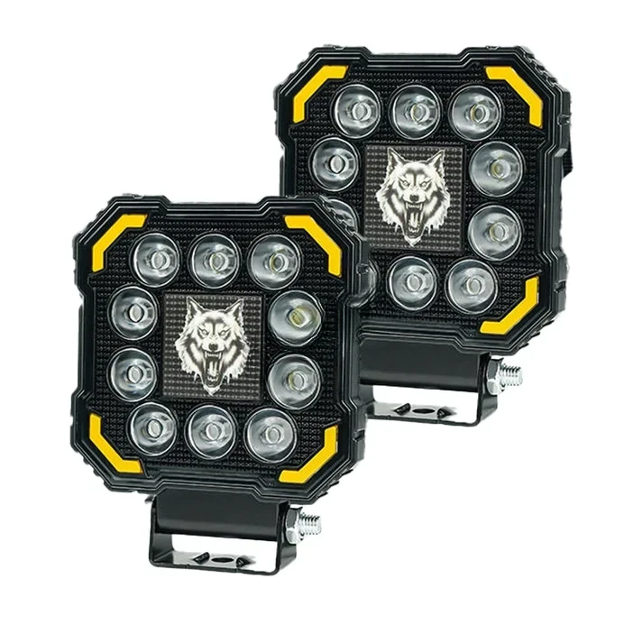 High-power HJG Wolf 12 LED fog lights with red DRL & flash mode for bikes and cars. Waterproof, durable & ultra-bright.