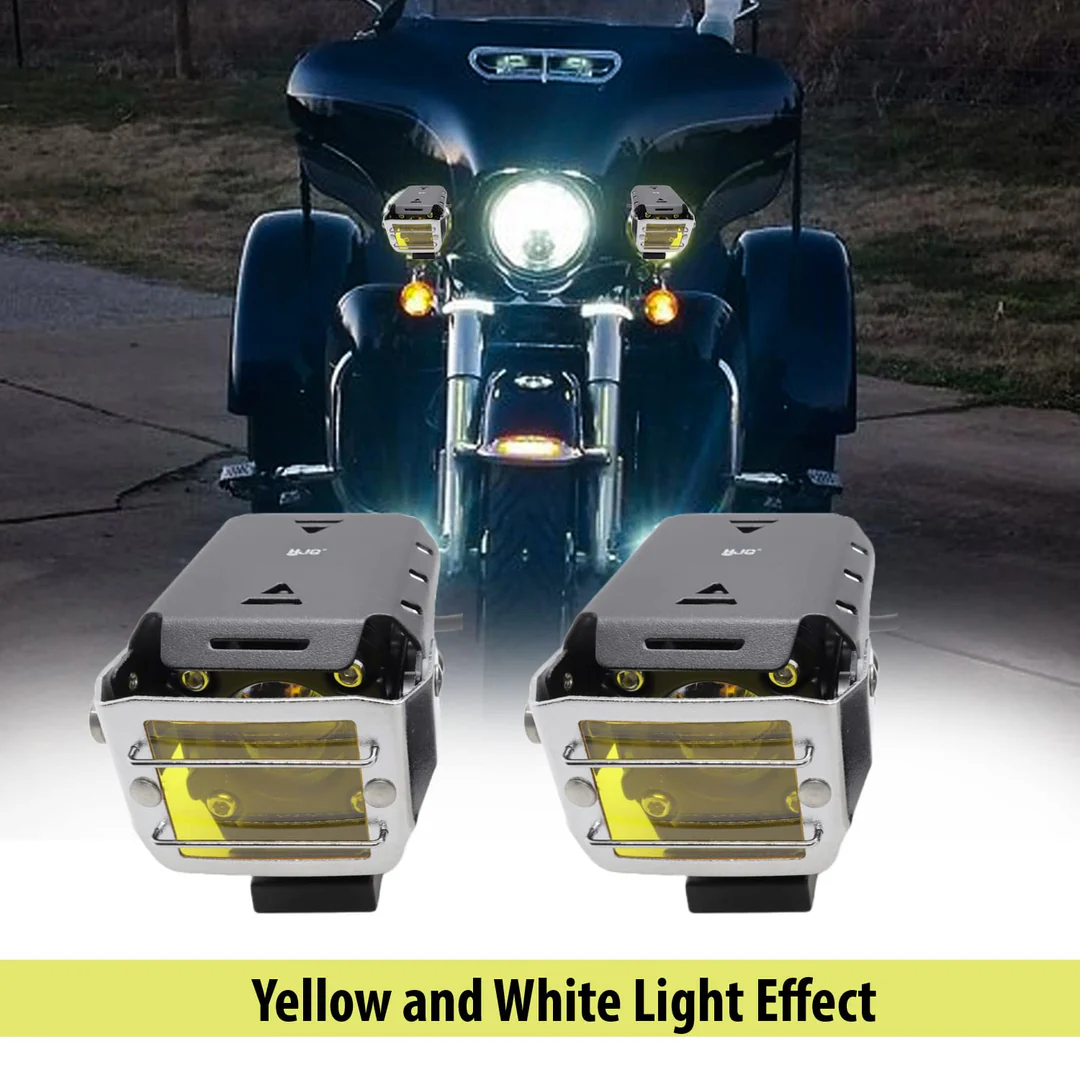 HJG-111 Fog Light Universal Motorcycle Dual Color Led Fog Light With Wiring Kit Wiring Harness+ Fuse +Switch+ Relay + Strobe Flasher for Two Led Work Fog Light Plug N Play System ( 90W)(10-80V DC)