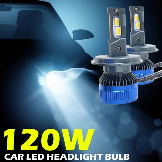 120W H4 LED headlights with 12000 lumens, Hi/Lo beam, waterproof design, and universal fit for bikes and cars.