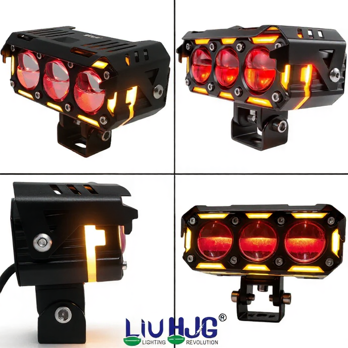 The HJG Future Eyes Ring DRL 3 Lens LED Projector Fog Light is a high-performance 240W auxiliary lighting solution designed for maximum visibility, durability, and style. Featuring multiple beam modes, red devil eye DRL, amber ring DRL, and a triple-lens projector system, it ensures superior illumination in all weather and driving conditions. With universal fitment and plug-and-play installation, it’s a perfect upgrade for any car or bike.