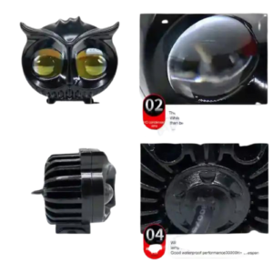 HJG Owl 40W Dual Color LED Lights with projector lens & IP67 waterproofing – perfect for motorcycles.