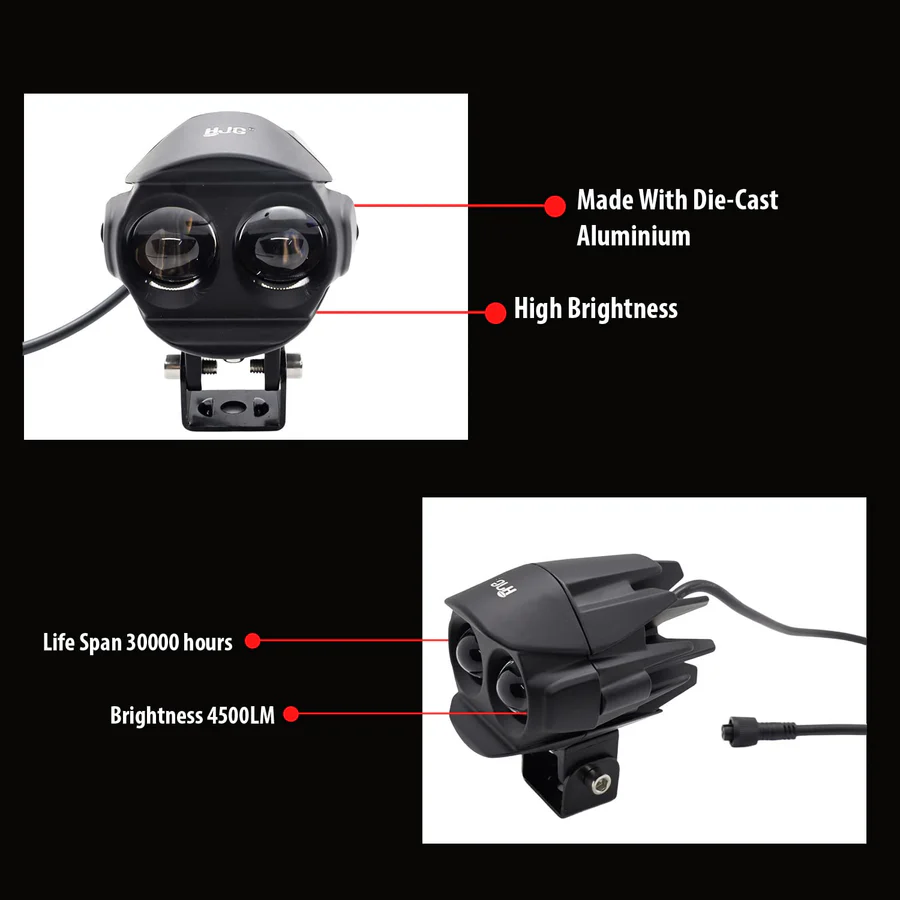 Universal Headlight Black Shell LED Fog Light Auto bicycle Spot Lamp For Bicycle, Motorbike Description: · 100% Brand New and easy installed · angel light: White & Yellow. · Great Package with installation tools · Waterproof, dust-proof, rust-proof, you can use this headlight even in rainy days · 2 ways of light: White & Yellow Light · Light Power: 90w · Lifespan : 30000 Hours. Flux: 4500LMX · Environment Temperature: -40~85 cent degree· Range: 400m · Material: Aluminum Alloy · LED Bulb: 4500LMX U.S. Imported LED · Weight: 1200g. 5-1,00,000 hours life, at least 15 times in the xenon lamp.