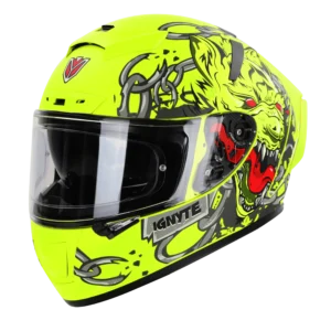 IGNYTE IGN-4 HYENA Glossy Fluo Neon Helmet – Premium Safety, Ventilation & Comfort