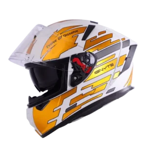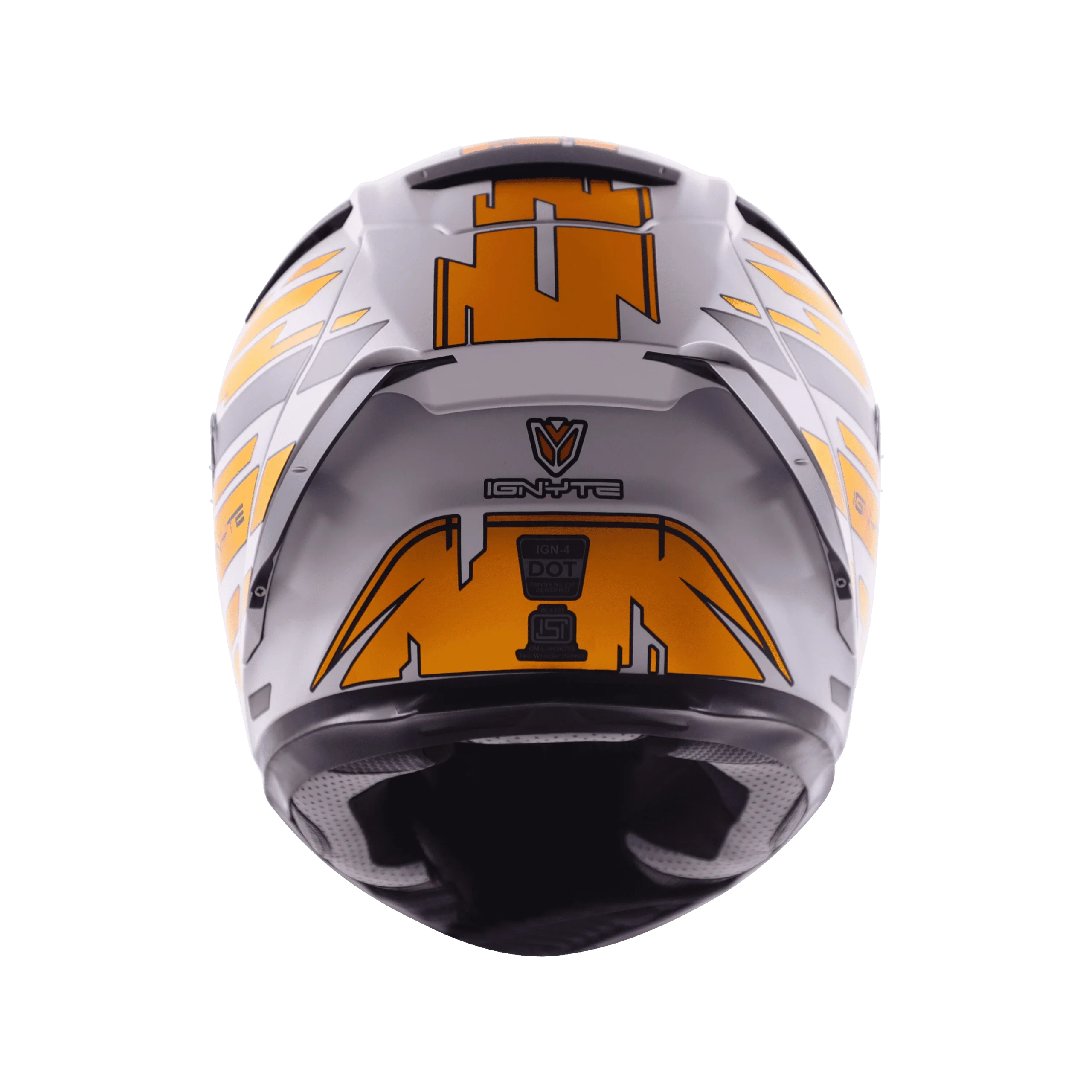 Engineered for riders who demand maximum protection, superior comfort, and a sporty design, the Ignyte IGN-4 ISS Chrome Glossy White with Gold Helmet combines advanced safety standards with modern aesthetics.