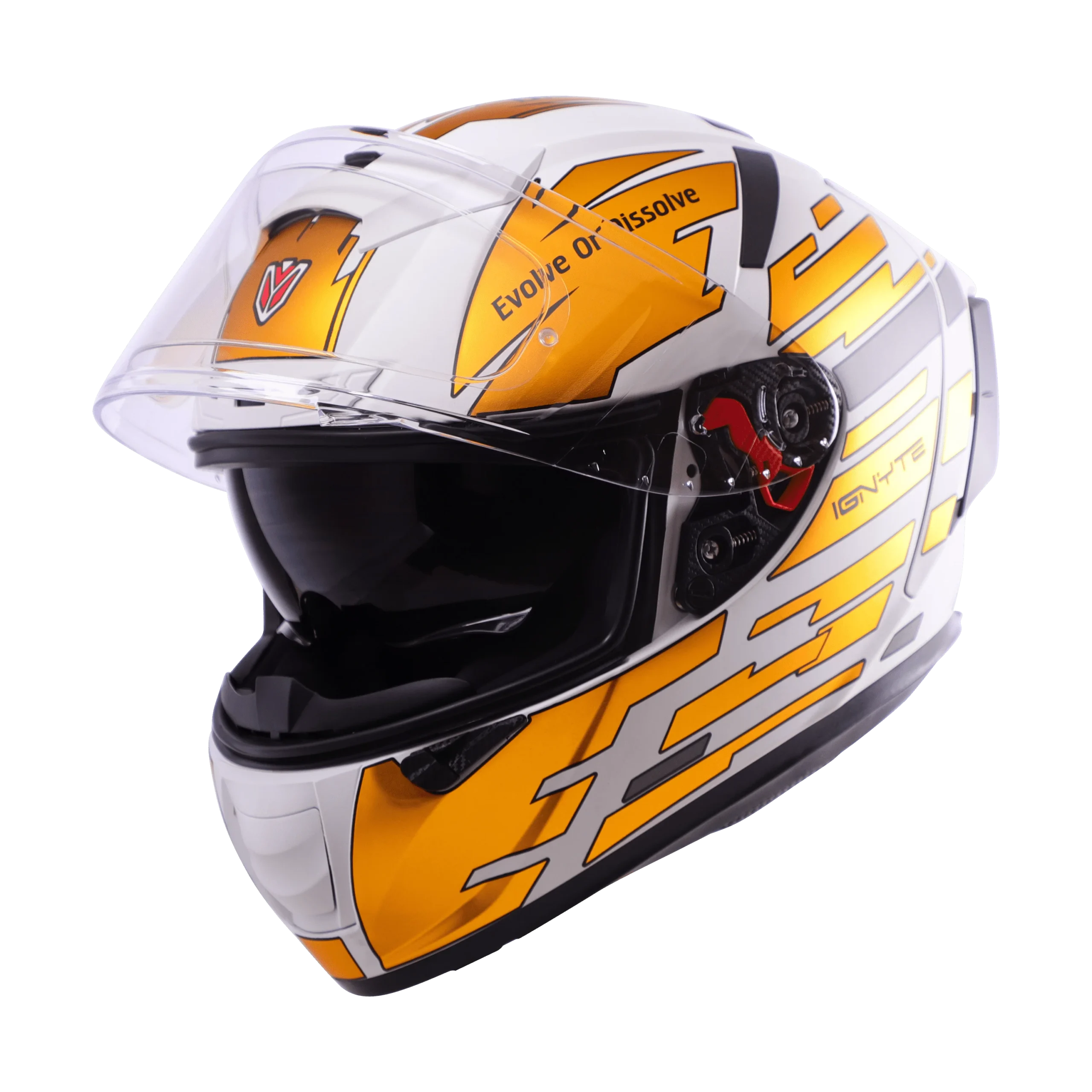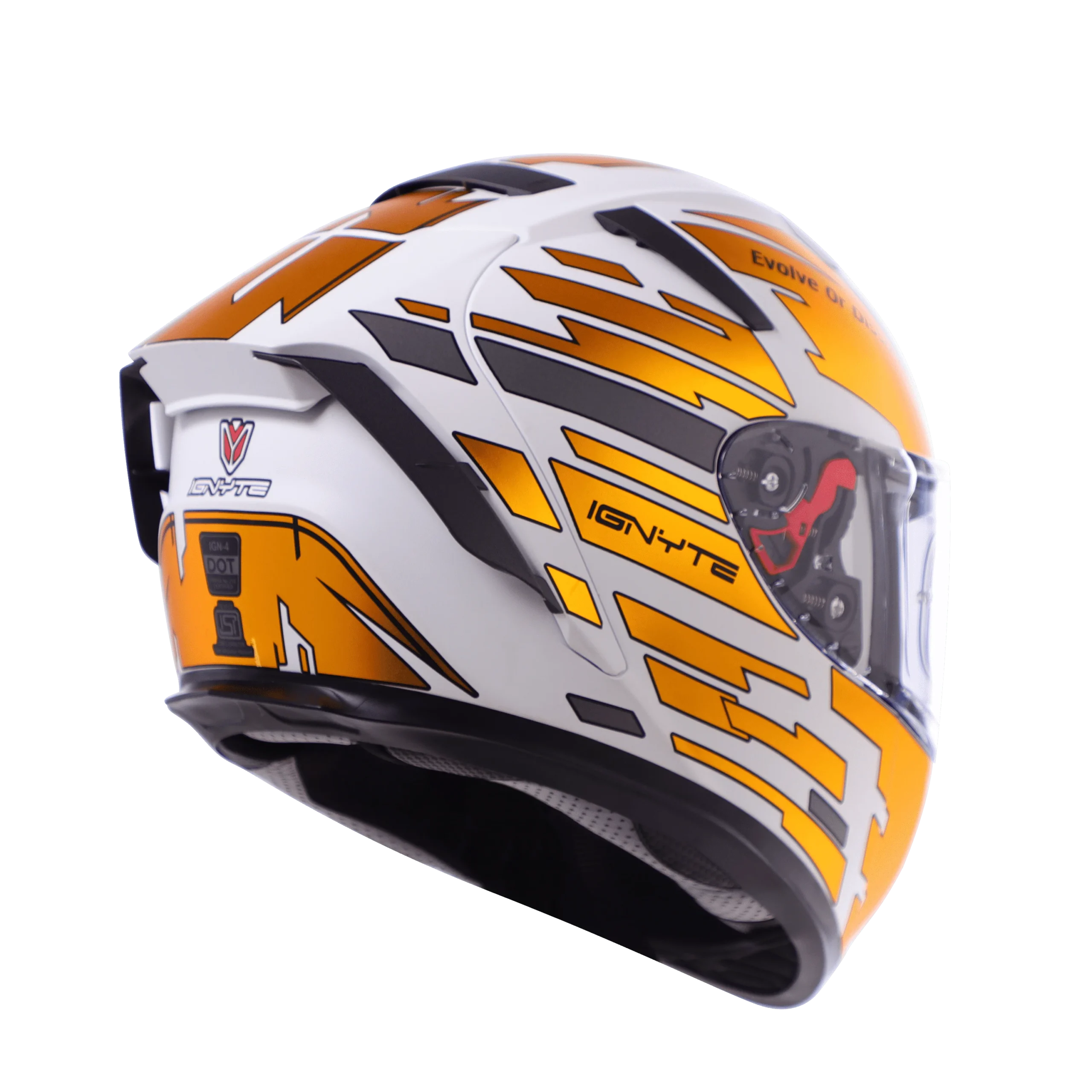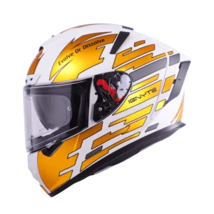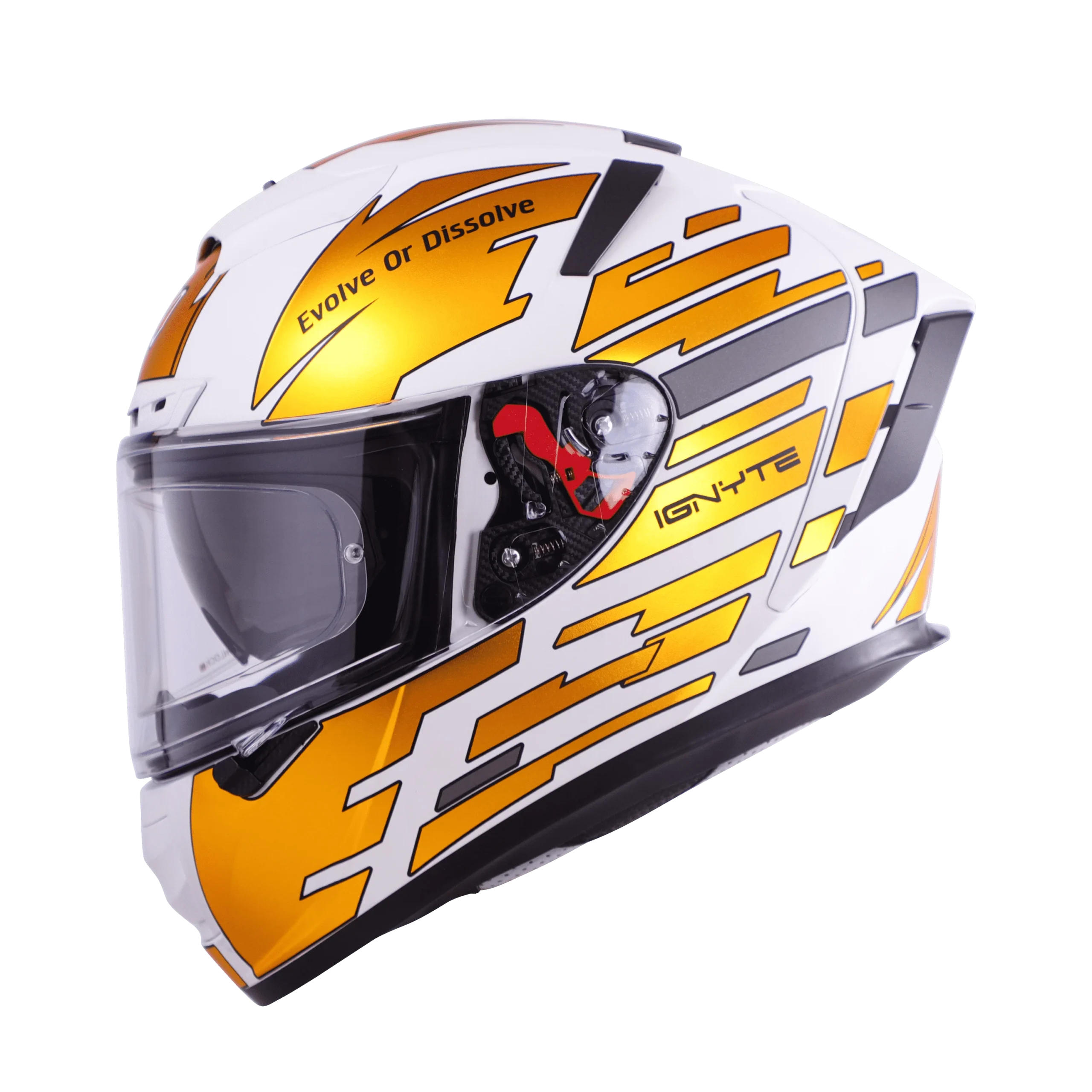 Ignyte IGN-4 ISS Chrome Glossy White with Gold Helmet – Certified safety, anti-fog visor & sporty comfort.