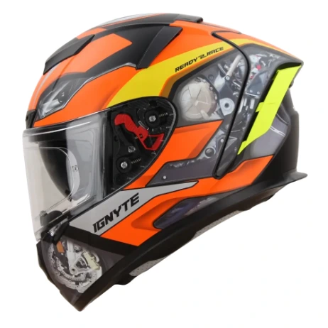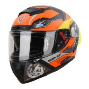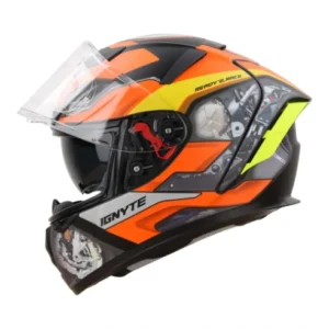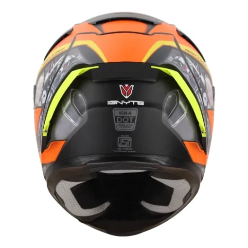 The Ignyte IGN-4 MAC Mat Black Orange Helmet offers DOT & ISI certified protection with airflow, comfort & sporty design.