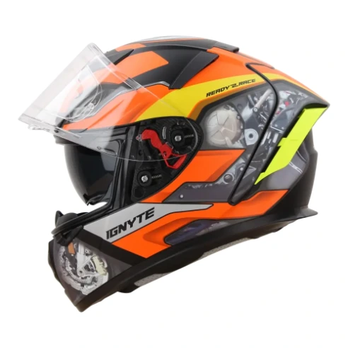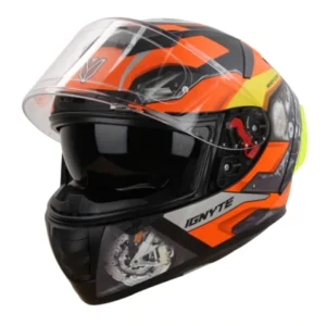 Engineered for riders who demand uncompromised safety, comfort, and aerodynamics, the Ignyte IGN-4 MAC Mat Black Orange Helmet blends high-impact protection with premium features. With dual certifications (DOT & ISI), advanced ventilation, and Pinlock-ready visor, it ensures you ride with confidence, style, and comfort across all terrains.