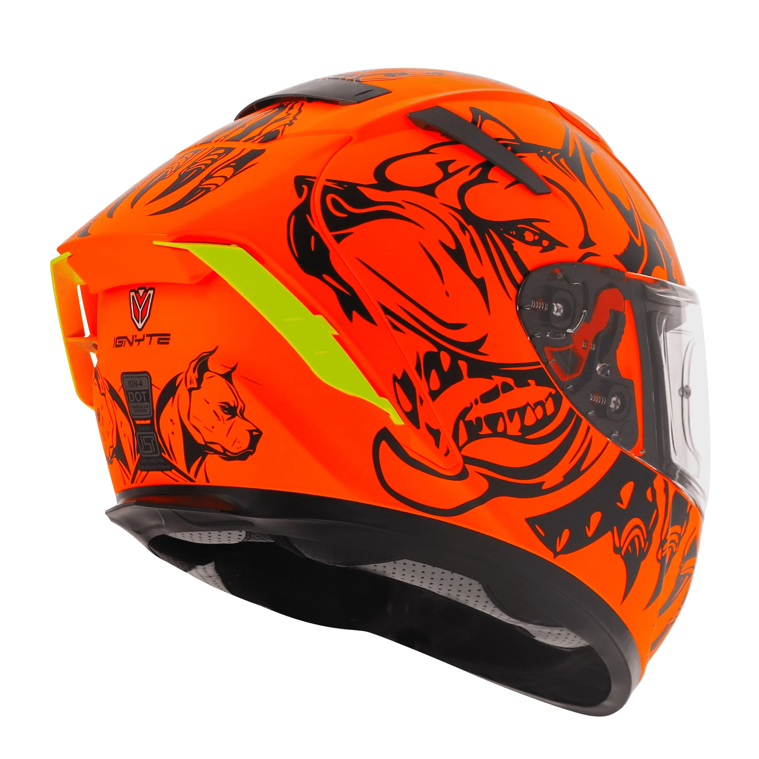 Ride safe in style with Ignyte IGN-4 Pitbull Helmet – DOT & BIS certified, lightweight, ventilated, scratch-resistant, and Pinlock-ready.