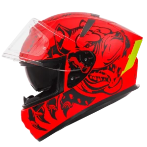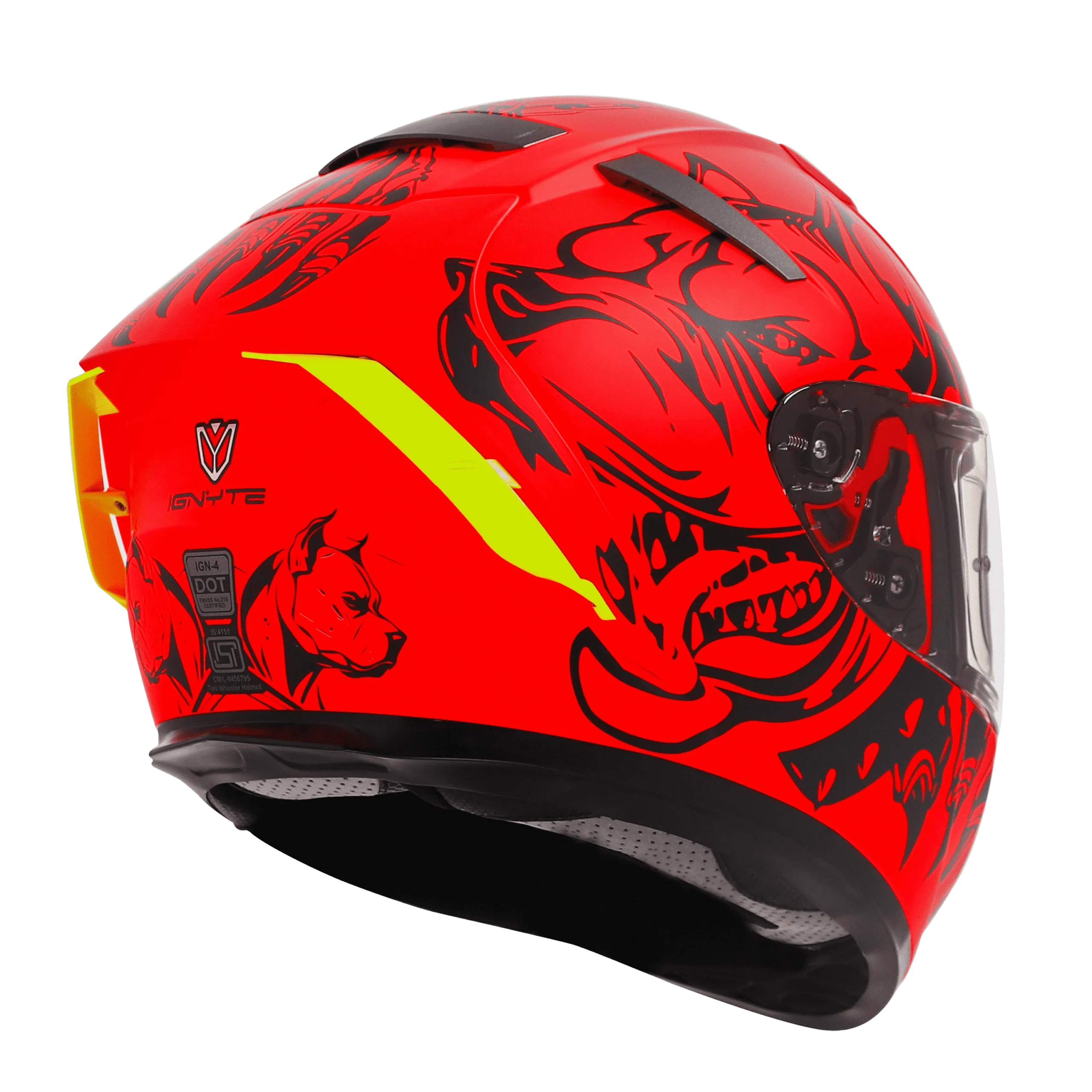 DOT & ISI certified Ignyte IGN-4 Pitbull Glossy Fluo Neon Helmet with anti-fog visor, vents & washable interiors.