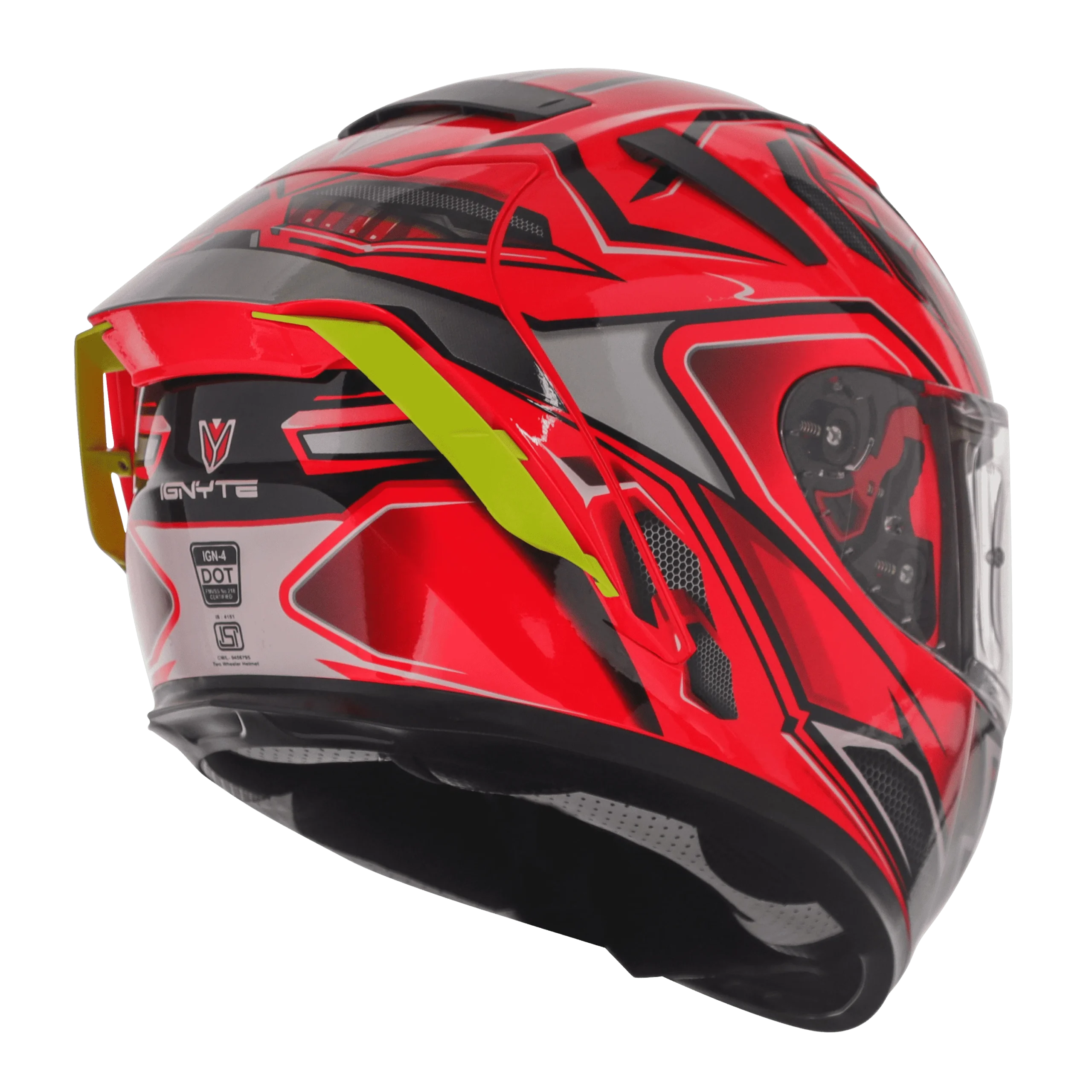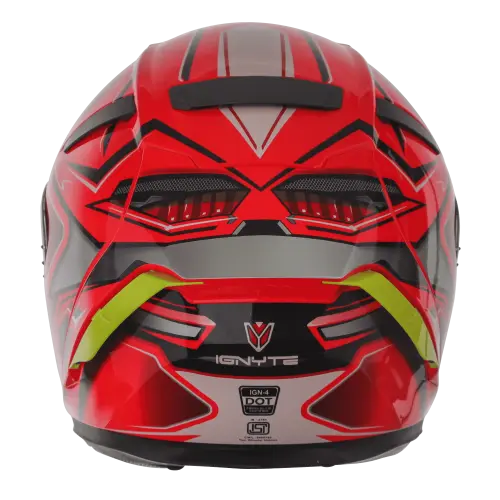 Ignyte IGN-4 Racer Helmet with DOT & ISI certification, anti-fog visor, sporty spoiler & washable padding.