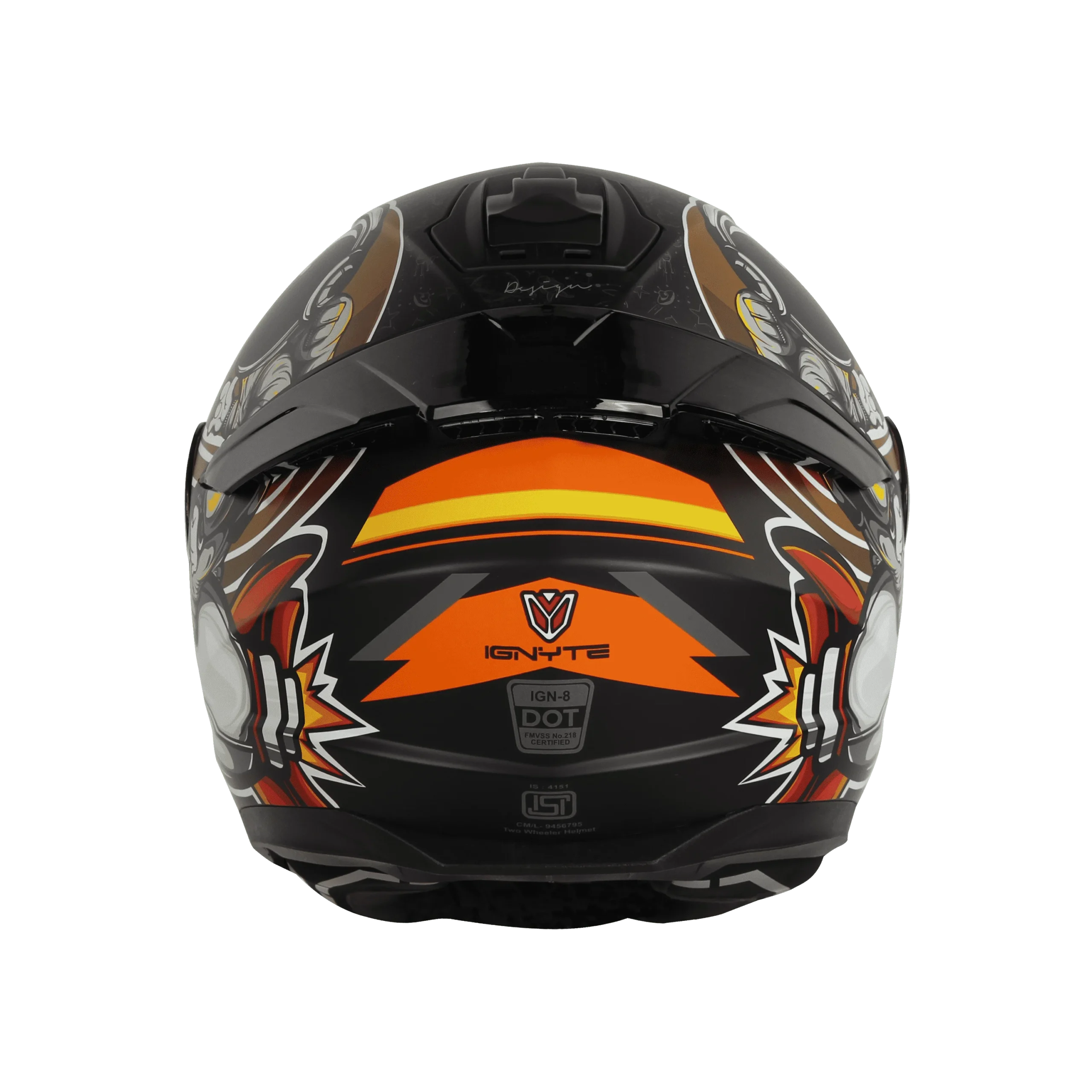 IGNYTE IGN-8 Astronaut: PC-ABS shell, dual DOT/ISI safety, smoke spoiler, and anti-fog visor.