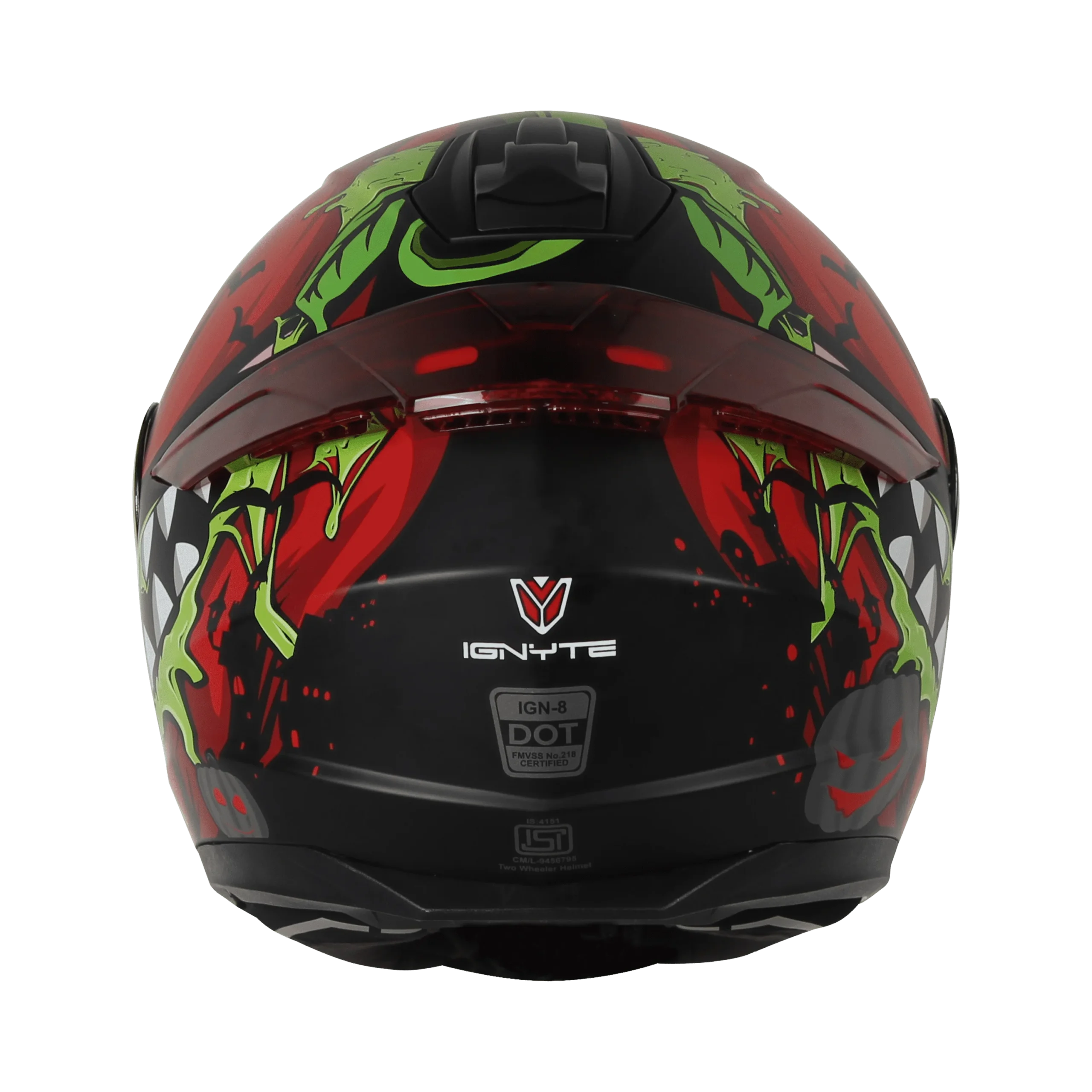 IGNYTE IGN-8 Glossy Red: Dual DOT/ISI certified, high-impact shell, red spoiler, and anti-fog visor.