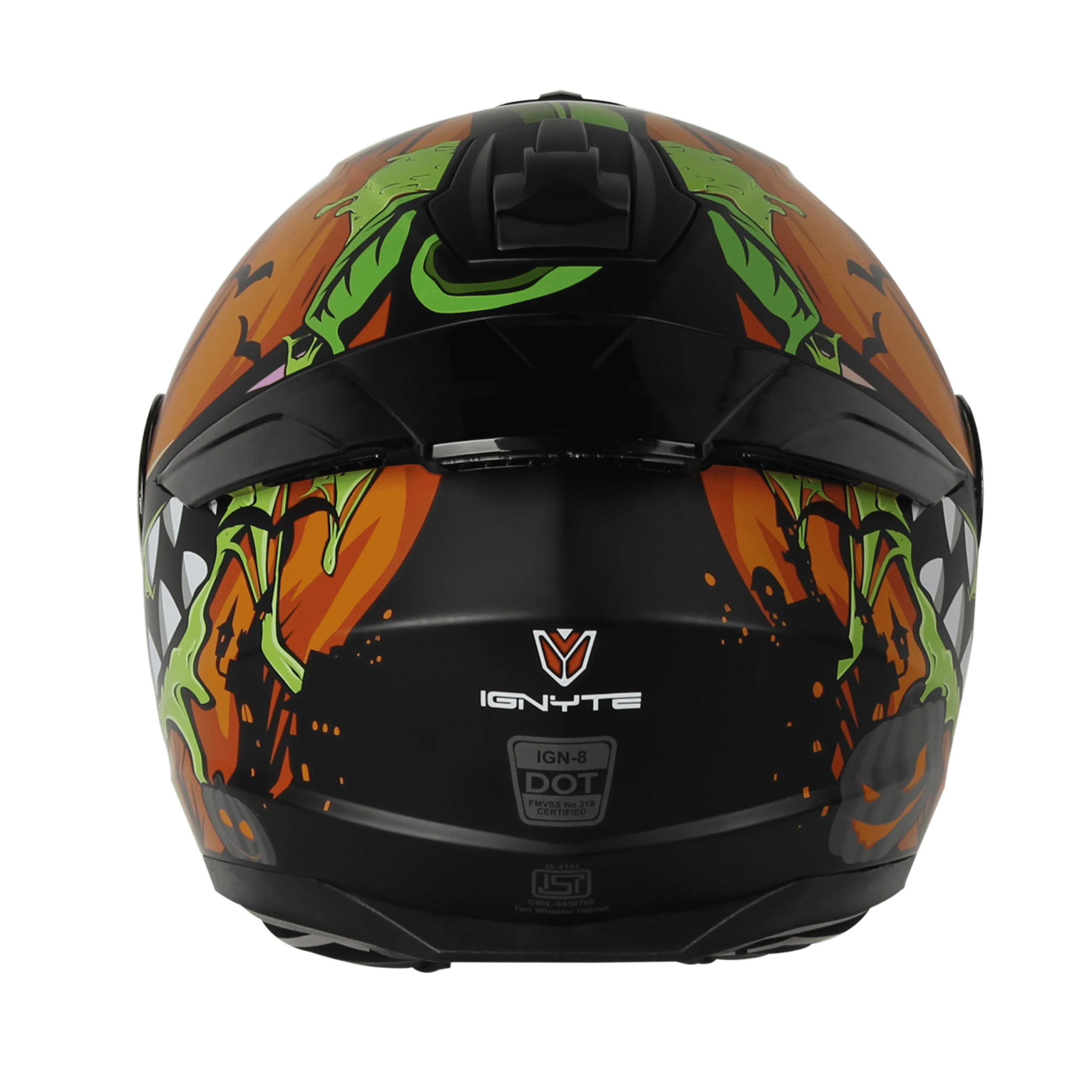 IGNYTE IGN-8 Pumpkin Matte Orange helmet with DOT & ISI certification, smoke visor, Pinlock 30 & sporty spoiler.