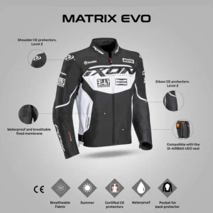 Ixon Matrix Evo Jacket Black/White – Premium Riding Protection & Comfort