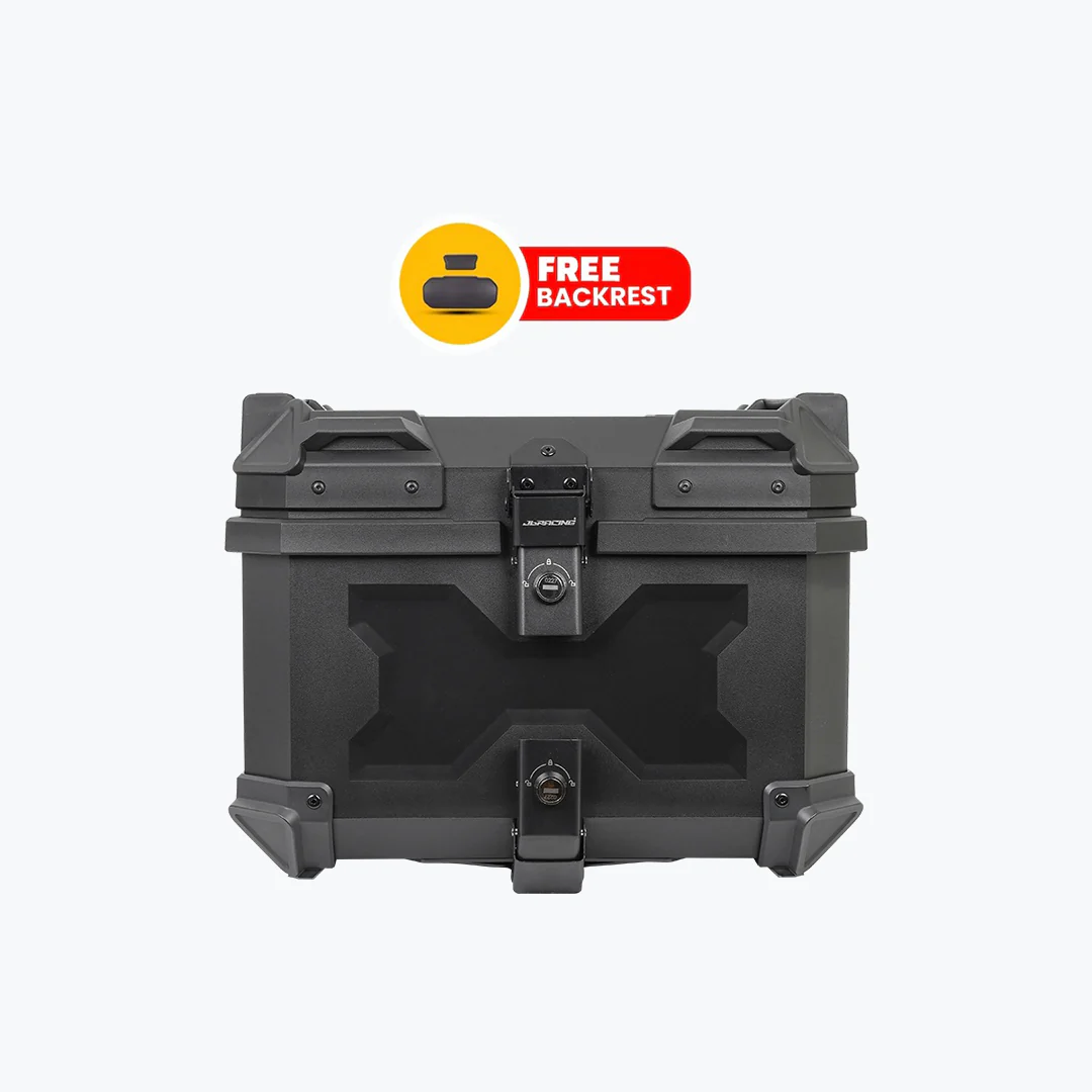 JB Racing TC X45L Economy Top Case – 45L storage, ABS durability & pillion comfort with backrest pad.
